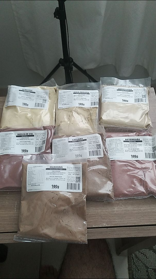 Coloque uma colher de café de cada produto (ou de alguns, se não quiser todos juntos) em pó em um copo de água, suco, vitamina, misture bem e beba pela manhã. Ingerir outra dose antes do almoço se necessitar de mais energia. Não exceder mais do que 2 doses diárias.